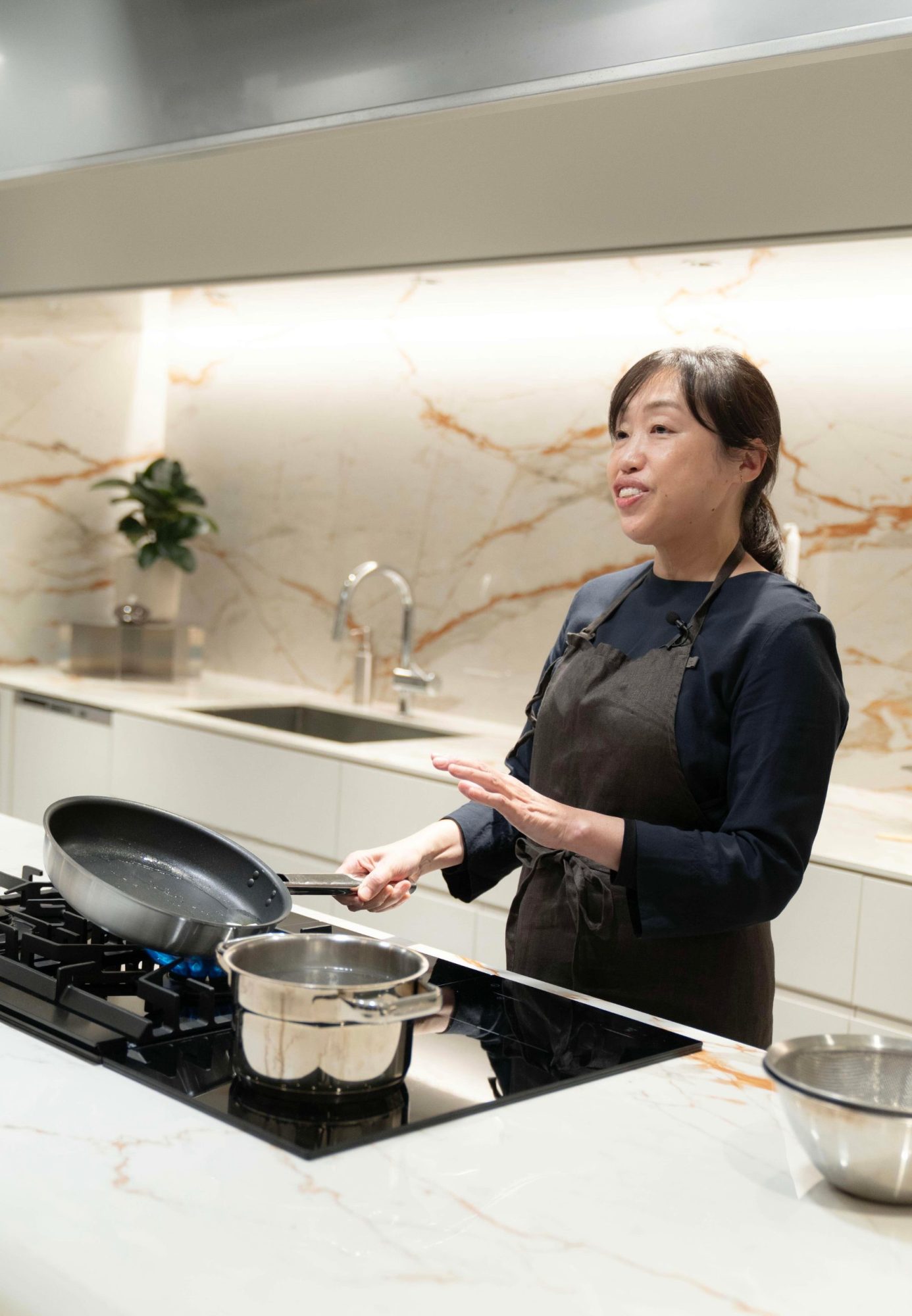 2025年11月28日「リアルに理解できる G:LINE」が開催されました。登壇いただいたのは、キッチンジャーナリストであり『REAL KITCHEN & INTERIOR』の本間美紀さんです。 キッチン・インテリアのプロフェッショナルな視点から、デザインと機能で常識に挑む「G:LINE」を、実際の調理実演を交えて“リアルに”語っていただきました。