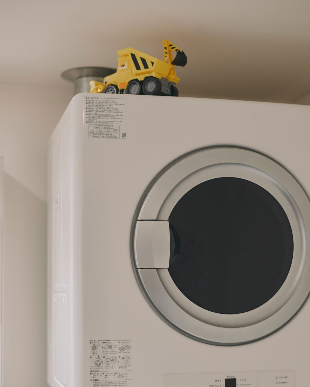 3世帯6人が集う食事の時間は笑いが絶えませんが、大家族の暮らしは家事の手間も増えます。まだ幼い普くんは着替えも多く、毎日の洗濯量は相当なもの。そんな大城家の強い味方が、リンナイの衣類乾燥機〈乾太くん〉です。